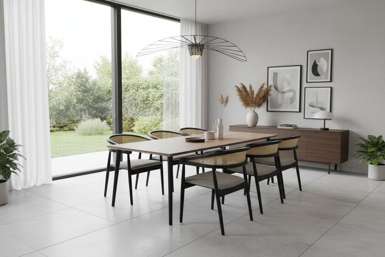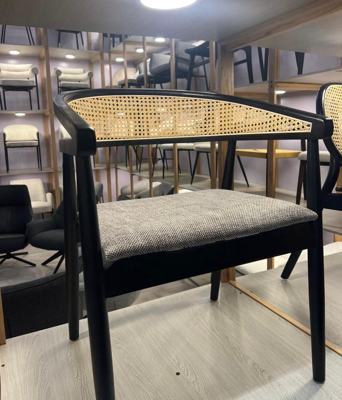 SILLA PARA COMEDOR EN ESTRUCTURA DE MADERA DE HAYAASIENTO TAPIZADO EN TELA COLOR GRISRESPALDO CON DETALLE EN BEJUCOMEDIDASANCHO 55CMFONDO 50CMALTO 81CMPRECIO INCLUYE ENVIO E IMPUESTOS
