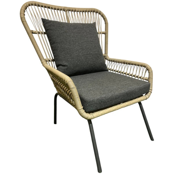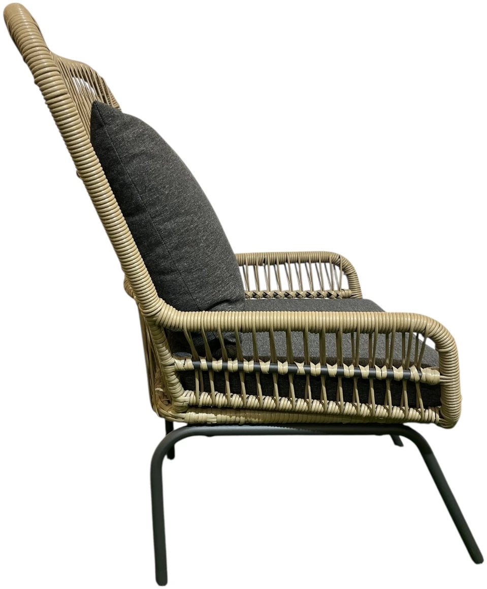 INCLUYE COJINERIA DE TELA IMPERMEABLE EN TONO GRIS OSCURO